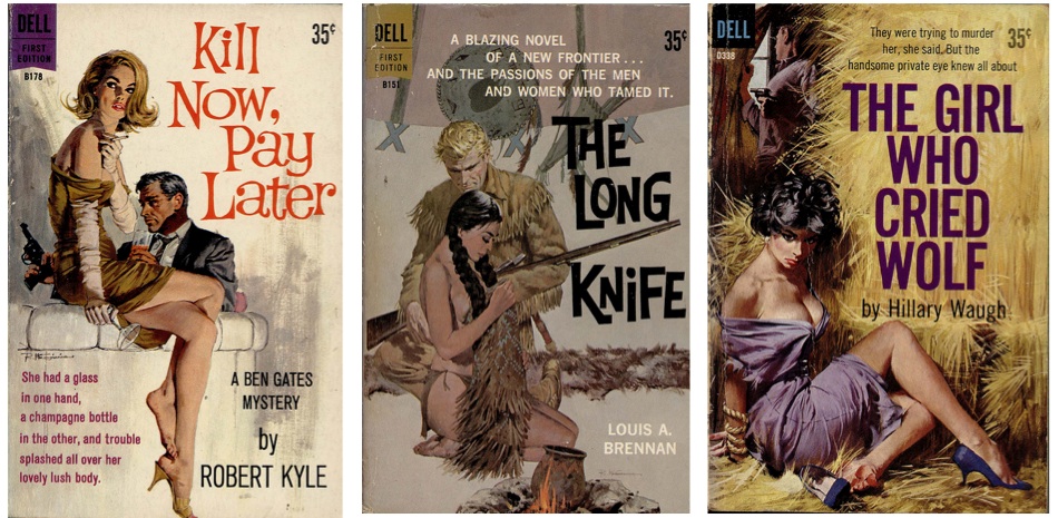 McGinnis was a prolific artist and was also widely known for his provocative illustrations that adorned the covers of many pulp detective and romance paperbacks. His illustrations of the female figure, often depicting the heroine or femme fatale of the novels in a pose that was sexually suggestive and risque, but that still fell within the bounds of modesty, were alluring and imaginative. His heroes were strong jawed, muscular men who reeked of danger, brutality and raw sex appeal.